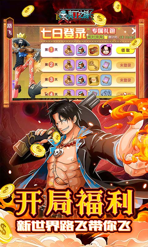 4、登录豪礼:登录就送5星超强索隆,超多经典海贼角色为你保驾护航!