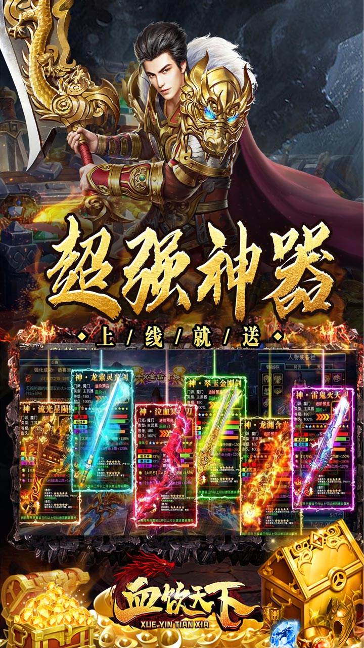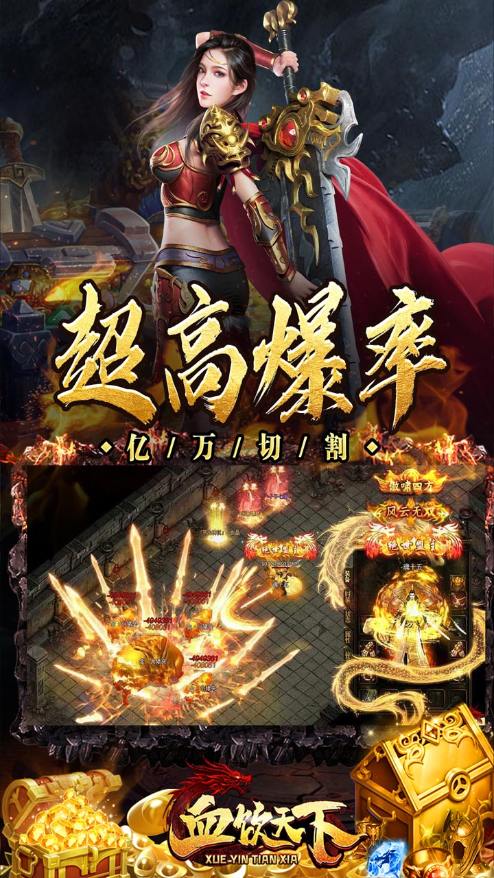 《血饮天下》是一款无限刀版本的超福利传奇手游,上线送天命之人满VIP炫酷时装和1000%爆率,打怪无忧的同时我们在游戏中加入了超多的丰富福利,还有多样的地图、专属神器、加速装备、超酷时装、炫酷光柱、免费礼包、超多活动一定让您玩的爽快!