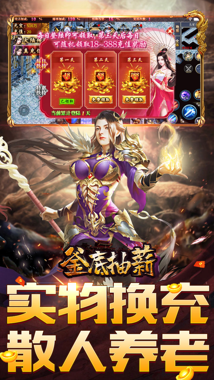 ★上线狂送:自动捡物 自动回收 ★充值券换充值 ★跨服争霸,胜者为王