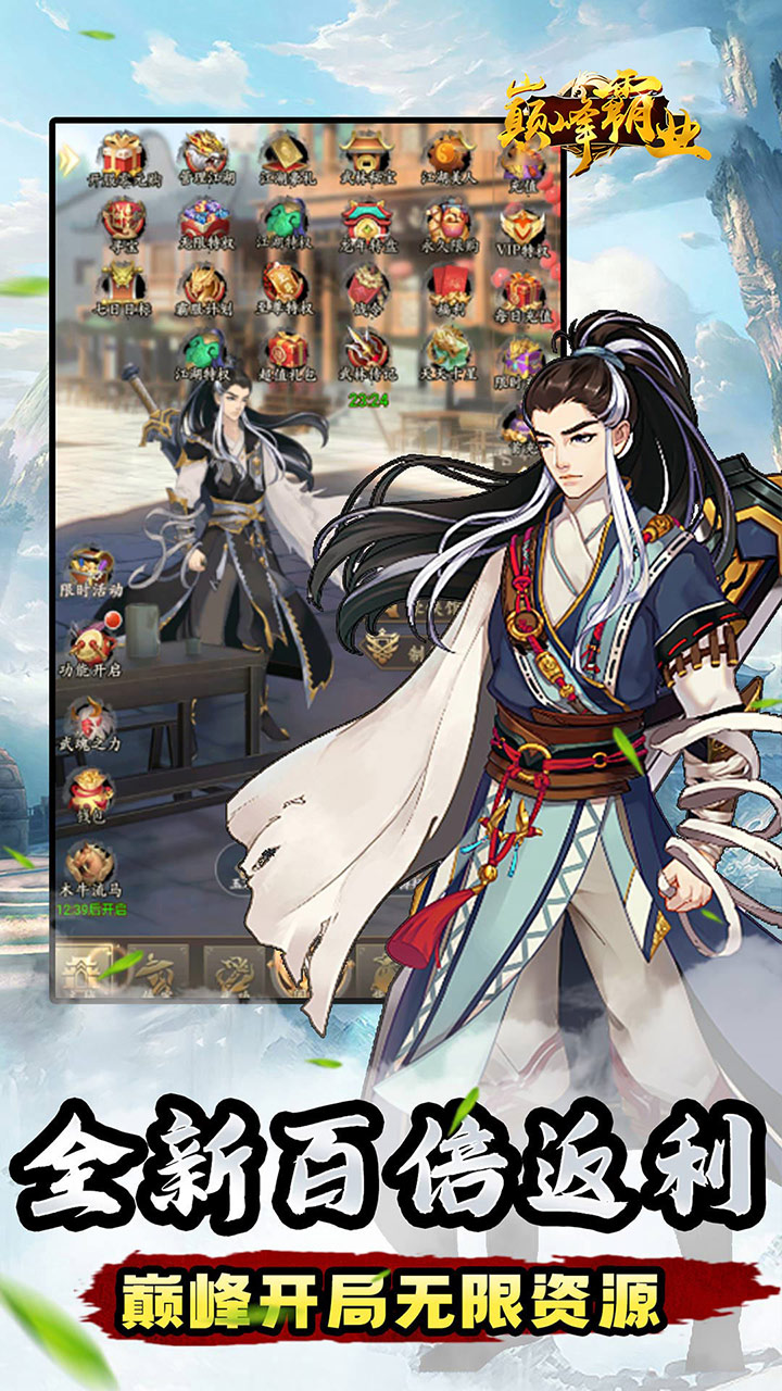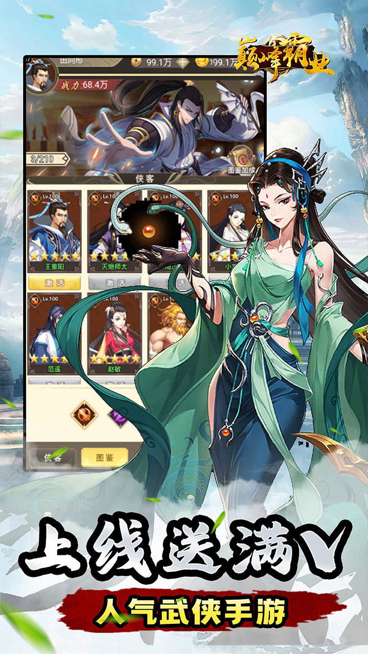 游戏介绍这是一款全新武侠手游,你在游戏中将扮演侠客搭配自己心意的武侠队伍,冲向武林之巅。游戏内超低0.05折优惠全新来袭,上线满V,巅峰开局送88万资源。全新霸服,百倍返利,赠送海量奖励。让你体验前所未有的武侠卡牌玩法,全新玩法,白嫖各种特权,沉浸式体验,超级炫酷的武功打斗画面,赶紧泰裤辣,赶紧成为武林盟主吧。