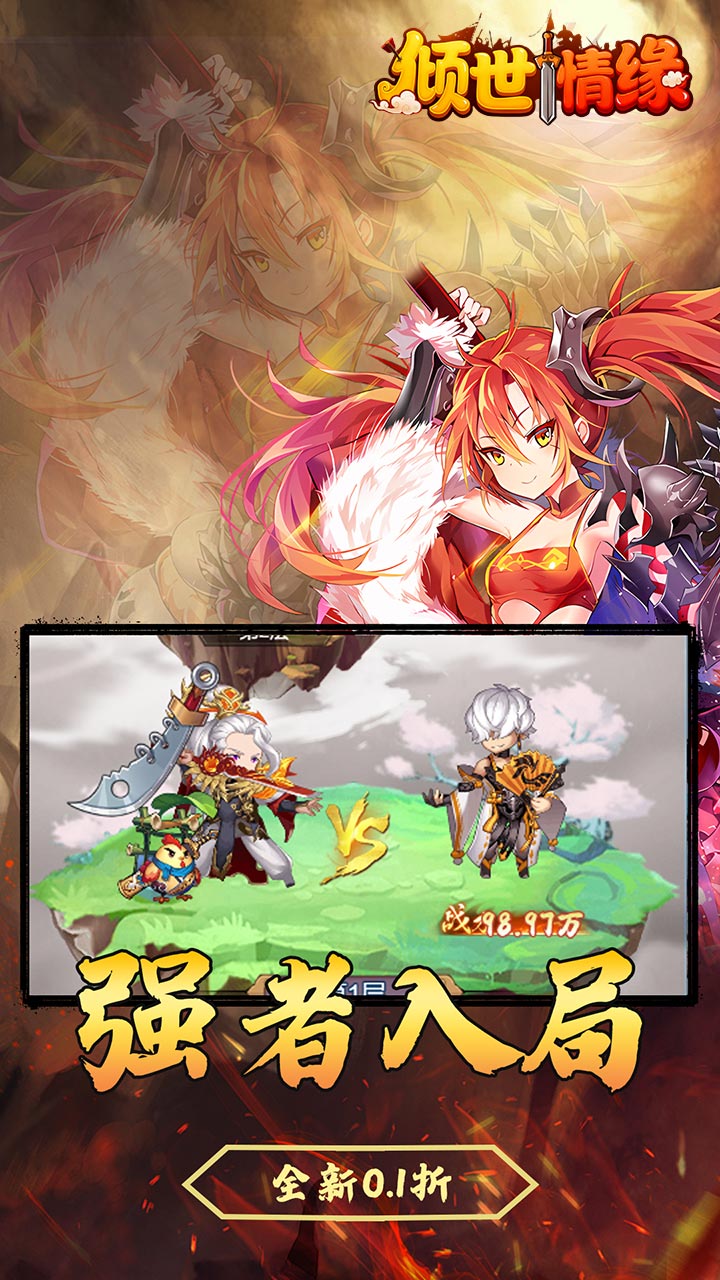 《倾世情缘(0.1折GM买断版)》是一款以三国为背景的卡牌放置游戏。在乱世三国开箱寻珍宝,开启热血征程!成长礼包、天命特权、尊享终身卡海量豪礼大放送。直送最高千锤锻造,极致欧皇开箱盛宴,狂送巨量福利,尊享定制称号,武将全属性自由定制。跨服竞技、阵营称雄,乱世之中谁与争锋,快来体验这开箱与战斗交织的热血三国之旅!