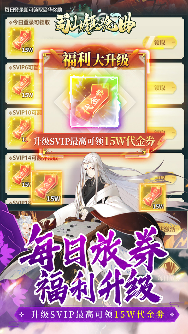2、买断版:天天游戏内无门槛领取不限时代金劵*10000,达到指定SVIP等级后每天最多可以领取代金劵*42000