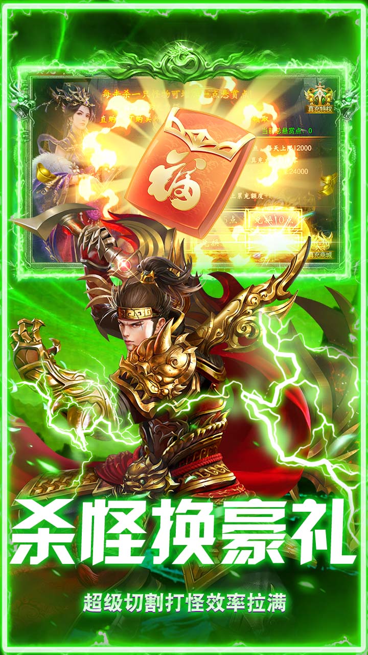 1.登录福利:上线领取新手豪礼、登录就送首充 2.百万真充:打怪兑换真充值点,免费兑换游戏道具 3.超高爆率:所有道具全靠打,小怪也能爆神装 4.赞助特权:打怪首爆领真充,无套路激活至尊赞助特权 5.活动玩法:超多活动玩法,参与即可获取大量材料、装备