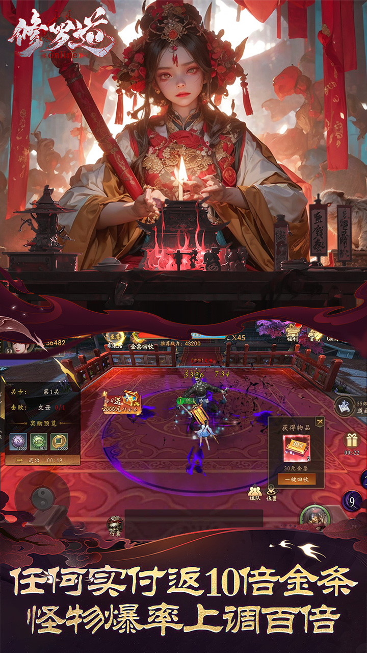 游戏介绍《修罗道Online(0.05折十倍返利)》是一款0.05折灵异探险的MMORPG手游,在游戏中,您将作为茅山传人与赫赫有名的驱魔家族一起施展道术神通,在风雨飘摇的民国时代与将臣展开了世纪大战。僵尸道长带你一起重返最原汁原味的港风捉鬼世界,开启与僵尸“约会”的奇幻盗墓之旅。
