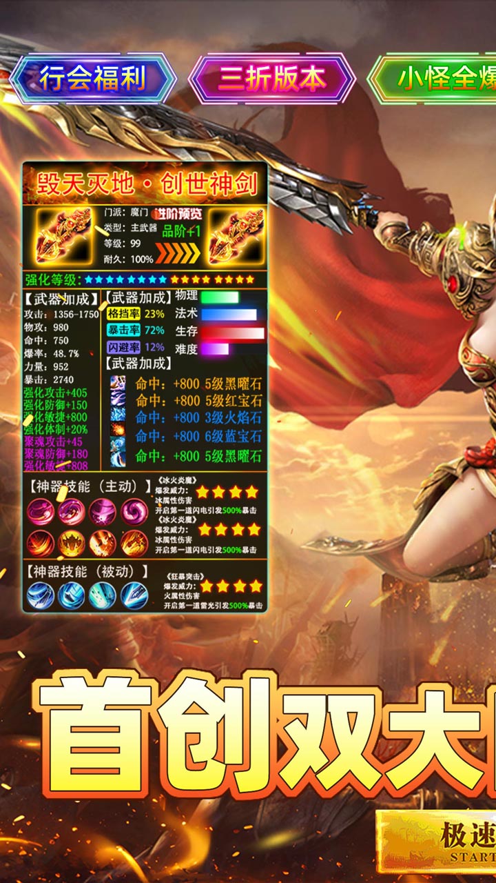 4.全新的属性设计,力量,体质,智力等等,更有大量专属装备,自由搭配!!!