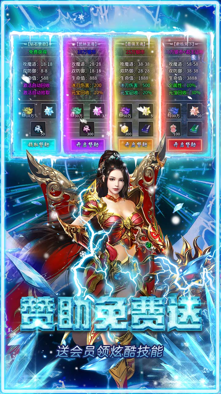 游戏介绍无畏之刃(0元爽爆充)是一款超高人气的冰雪题材传奇游戏,内置三折充值系统;创角送大量材料,登录累计赠送10000元真充卡;更有世界BOSS、玛法神技等你探索,所有的装备均能掉落,会员更是免费赠送,快来与兄弟一起重聚传奇,体验超炫酷的技能特效。