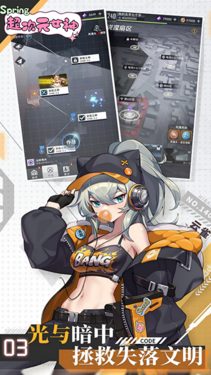 游戏介绍【超次元女神】是一款以科幻美少女为主题的策略放置卡牌游戏。跌宕起伏的剧情,庞大的世界观设定,玩家不仅可以沉浸式体验个性化剧情,还能在充满科技风的未来世界,加入不同阵营,体验人生的跌宕起伏。精致细腻的绘画风格,全新的3D渲染技术,力求以视觉的方式,为玩家带来一场声音与视觉的盛宴,每个角色都有其专属特效。