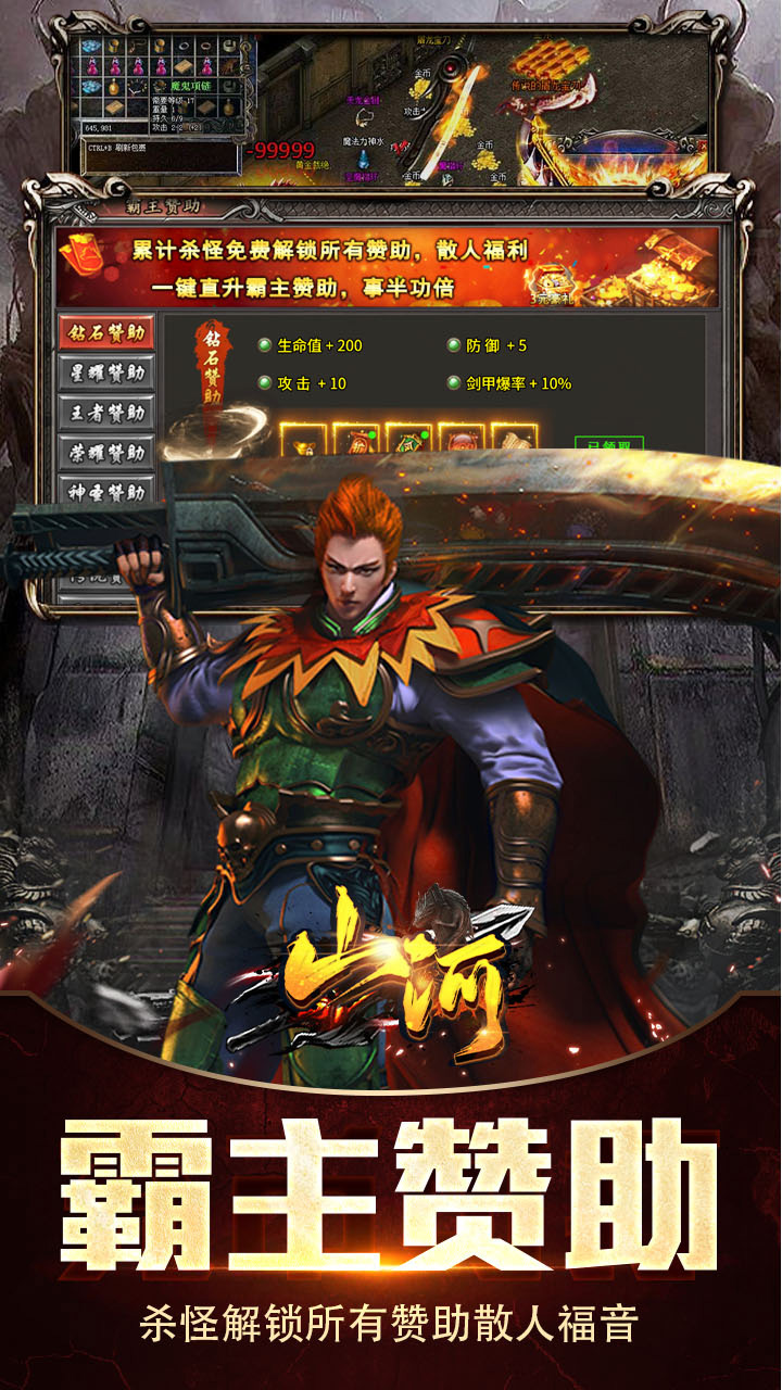 1.上线即送50元真充红包 面具盾牌套装 勋章血石套装 2.1.85 攻速专属 神器 微变单职业版本 3.神尊系统 攻击幻化神尊姿态 4.霸主赞助 杀怪解锁所有赞助散人福音 5.兵器谱 收集散落各地套装得真充红包