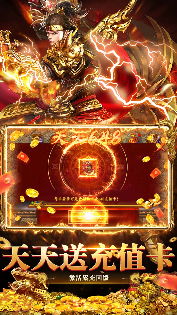 1.天天648:每日登录领取648充值卡,激活累充回馈