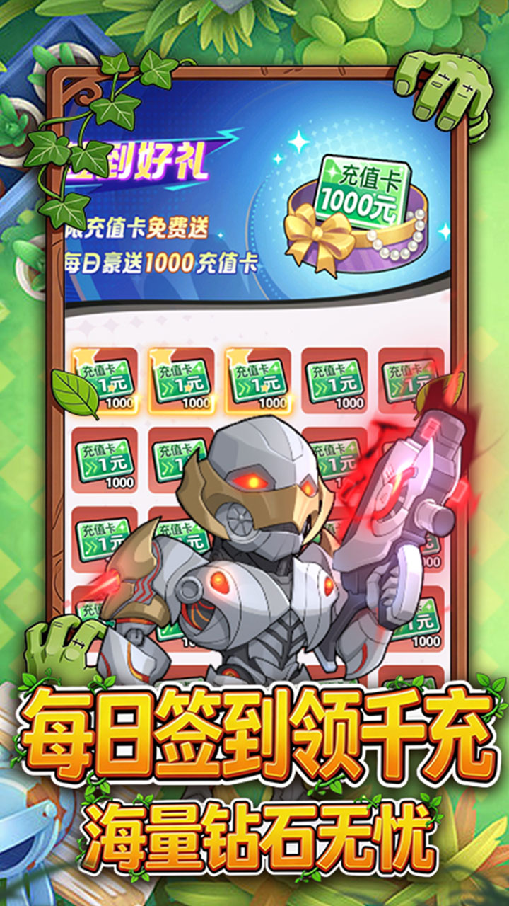 游戏介绍《豆豆打僵尸》0.1 折福利版本震撼首发!上线即享百万充值卡福利,创角就送 T0 级英雄机械哥斯拉,7 日直升传说品质,暴揍僵尸!每日海量钻石、充值卡、抽卡道具免费送,资源越囤越多。Q 萌英雄集结,畅享解放双手的挂机战斗与轻松养成。游戏独创三 + 二阵营克制、策略布阵玩法,更可捕捉培养专属僵尸,趣味拉满。快来组建专属军团,开启轻松解压的僵尸征服之旅!