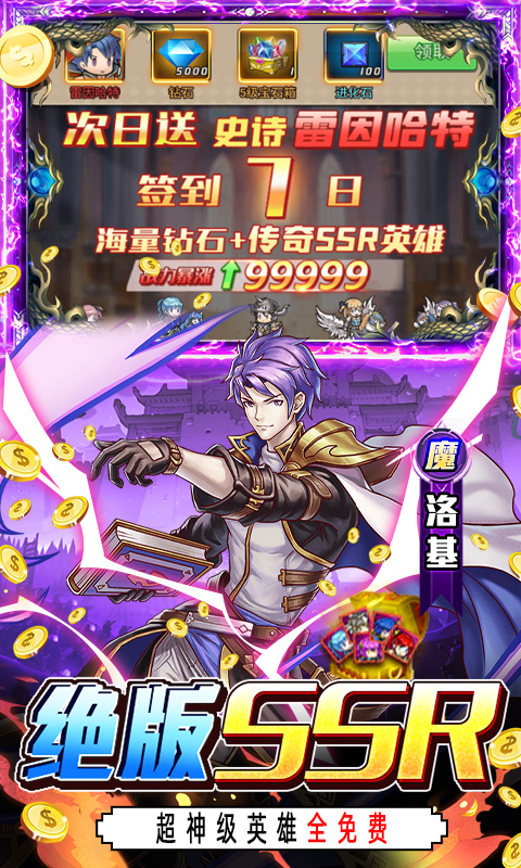 3.签到送传奇SSR英雄,次日送史诗英雄,7日送传奇SSR