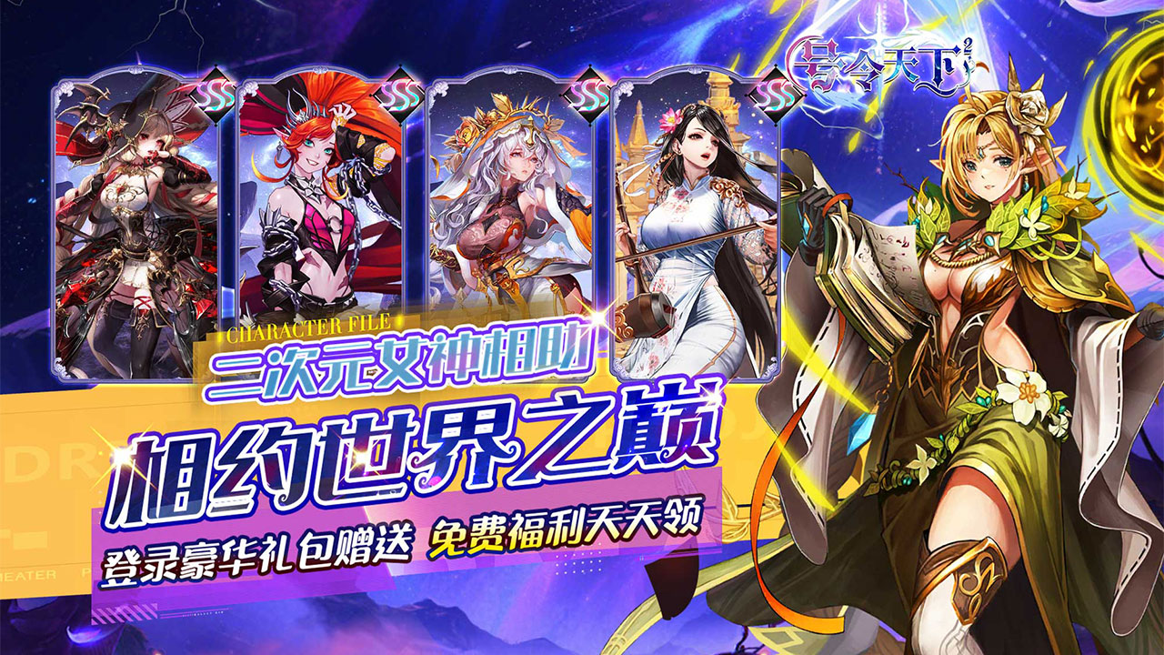 《号令天下2》是一款卡牌养成类二次元手游,在这个充满奇幻色彩的二次元世界里,众多不同类型的女神集结于英灵大陆,组成不同联盟阵营,呈现一场精彩绝伦的冒险之旅!高度自由收集养成,根据您的喜好发展游戏角色,释放您的游戏潜力,和不同的女神在奇妙冒险旅途中不断成长,创造属于你们游戏传奇。