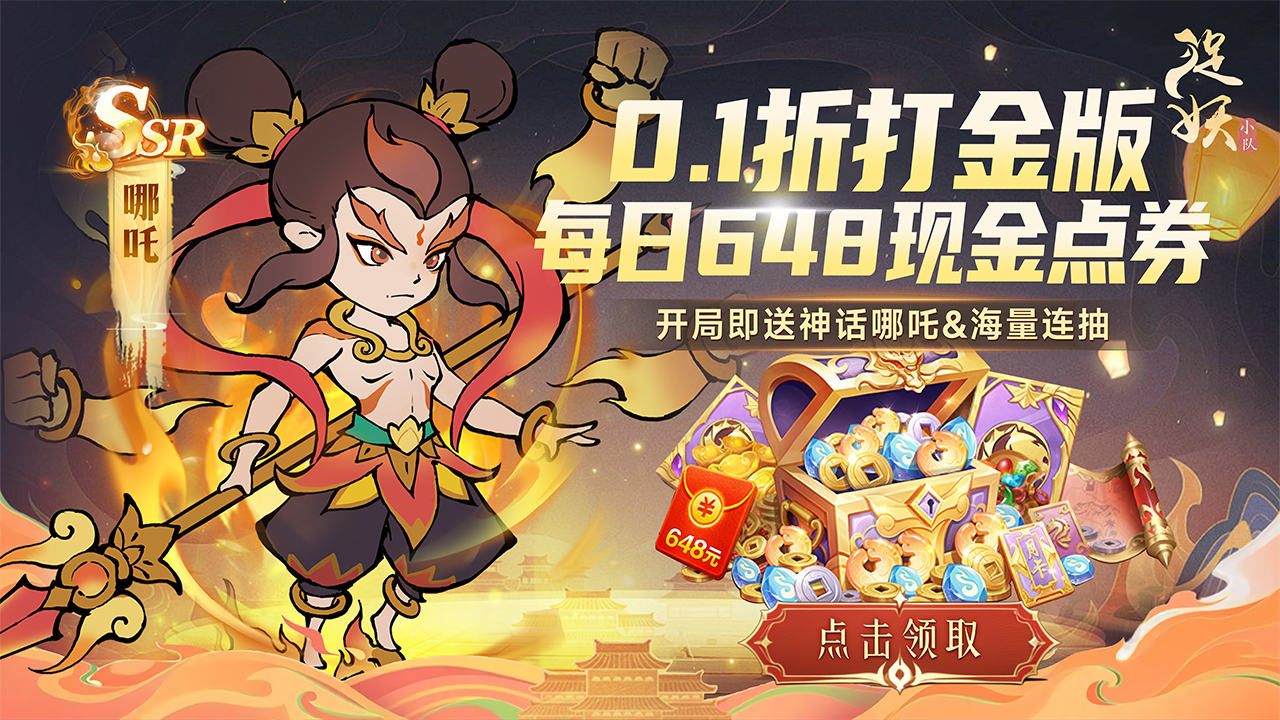 2、开局即送神话哪吒! 附赠6480仙玉、万枚金币、30连抽,海量资源领不停,开局即巅峰!