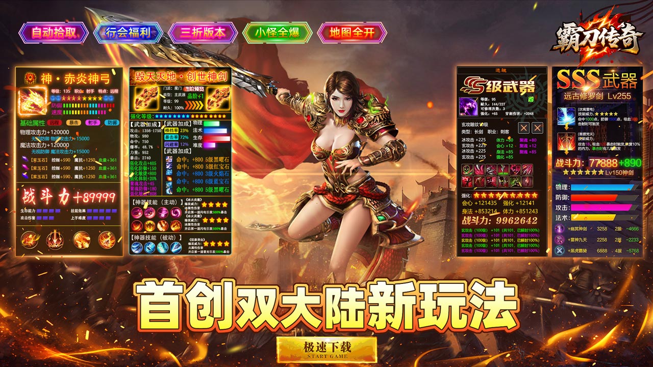 "霸刀传奇是一款1.85单职业沉默专属版本,特色双大陆玩法,容纳诡异,全新属性