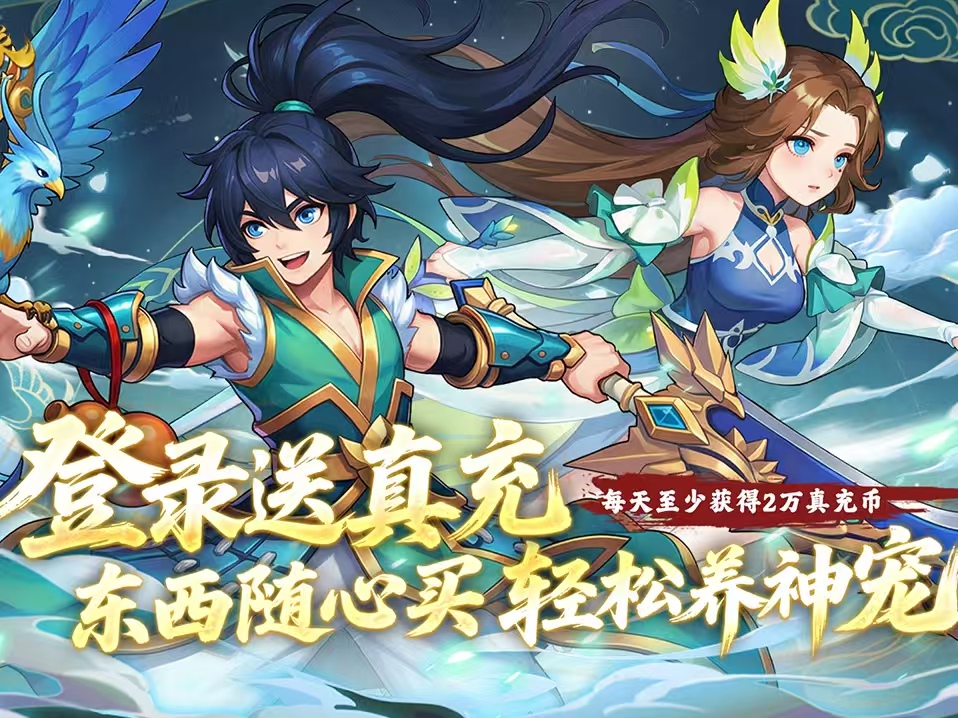 2、登录送1万真充币,每天喊话再送1万,每天至少3万真充币,道具礼包买买买,霸服神宠免费养成