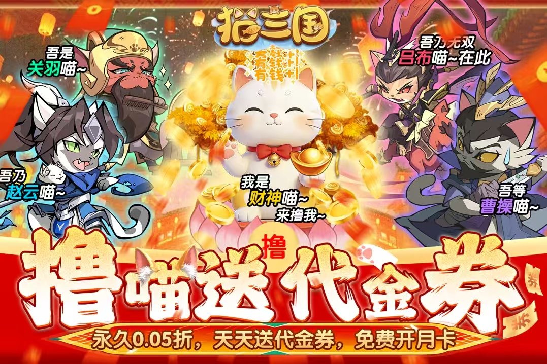 《猫三国》是一款以猫咪为角色设计的三国题材卡牌游戏。帅气可爱的猫猫造型,精心雕琢的战斗场景,肯定会让你爱不释手的喵~!指尖微操,新概念策略卡牌,强烈打击感搭配上百种阵容搭配,让你畅享全新舒爽的游戏世界!