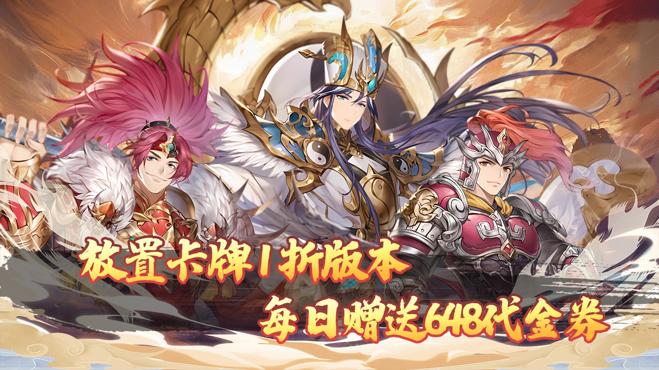 1、全新三国放置卡牌1折版本,每日赠送648代金券 2、平台额外在赠送648代金券,狂送1296 3、线下活动超强代金券返利,1元转游、绝顶角色只需10元