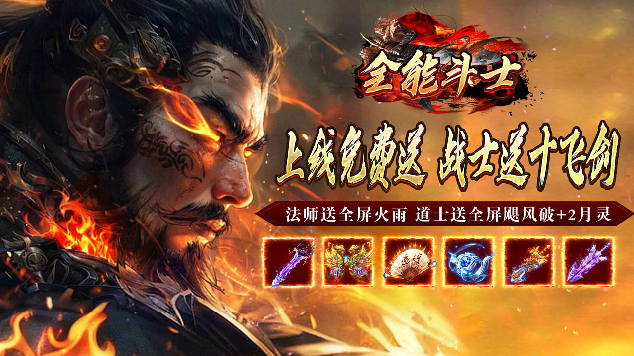 1.上线免费送 战士送十飞剑 法师送全屏火雨 道士送全屏飓风破+2月灵