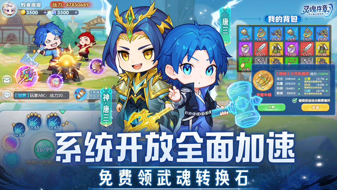 斗罗大陆正版授权的角色养成休闲手游。手持昊天锤,打铁就能爆魂环,开始你的斗罗修炼之旅吧!