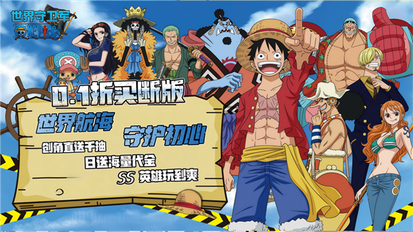 【世界守卫军(0.1折日送代金买断版)】是一款正版横版海贼卡牌游戏!游戏内真实还原了路飞一路成长的历程,一路挑战各个关卡,收入各个动漫里面脍炙人口的人物作为自己的伙伴,一起征战新世界!新版买断版强势来袭,首续充值0.1折,每日签到赠送2000代金券,爽玩停不下来;七天奖、新手狂欢、升级奖励、满月礼等大量福利活动,送超多充值卡、体力、抽卡等战力道具。
