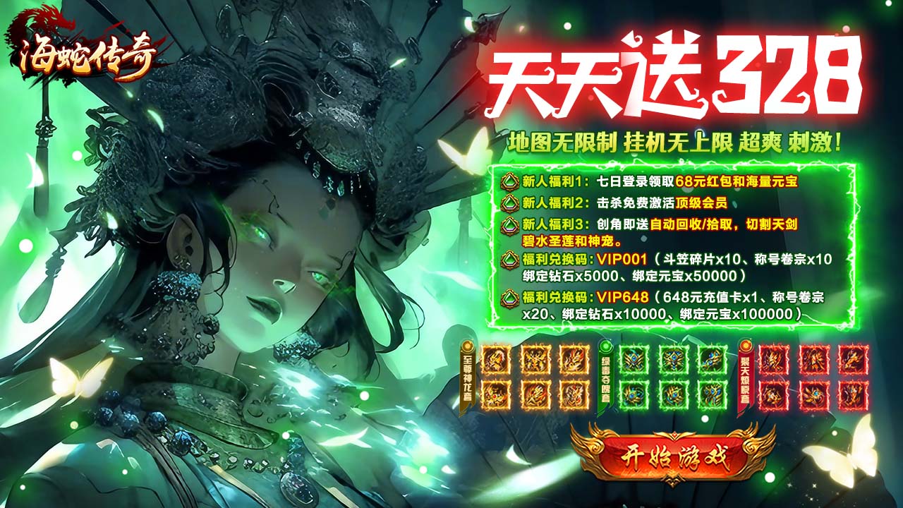 海蛇传奇(欢乐版)(复古攻速三职业)是一款多职业攻速题材的传奇游戏,内置三折系统;游戏特色是上线就送切割天剑,碧水圣莲和神宠,登录送328红包,免费会员击杀怪物即可免费获取,游戏内有天赋系统,专属装备等各种玩法,本服活动丰富,奖励丰厚;遇到活动也不要错过;白嫖也能变大佬!!